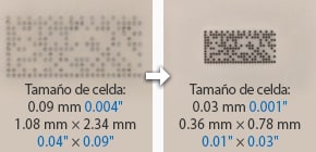 Códigos 2D extremadamente pequeños marcados con alta definición.