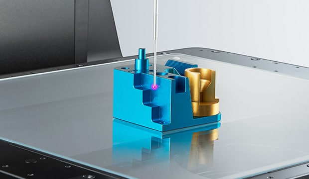 El láser multicolor incorporado captura instantáneamente la altura de la ubicación especificada en la pieza, lo que permite una medición precisa independientemente del material.