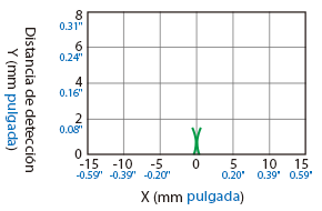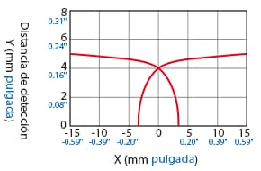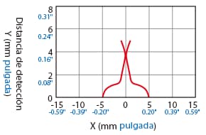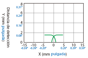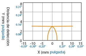 A continuación se muestra la posición del punto ON cuando el objeto detectable estándar (indicado en las especificaciones) se mueve de forma paralela al sensor en la dirección de la flecha.