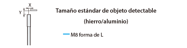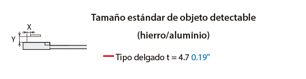 Variación de la distancia de detección según el tamaño y el material del objeto detectable (Ejemplo típico)
