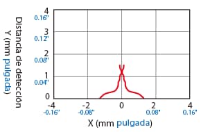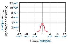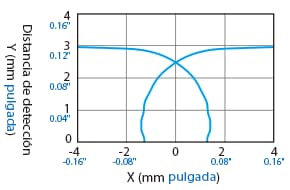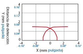 A continuación se muestra la posición del punto ON cuando el objeto detectable estándar (indicado en las especificaciones) se mueve de forma paralela al sensor en la dirección de la flecha.