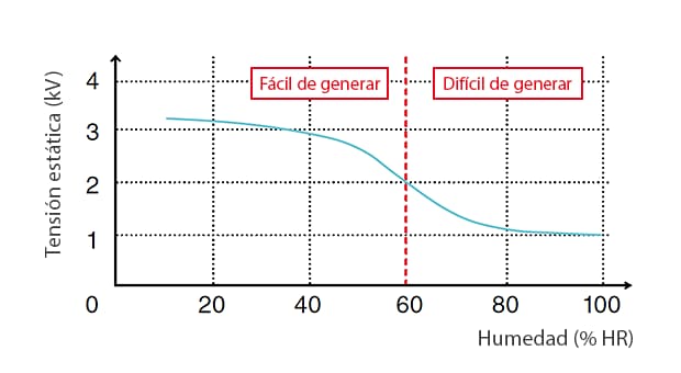Relación entre humedad y cantidad de electricidad estática generada (ejemplo típico)