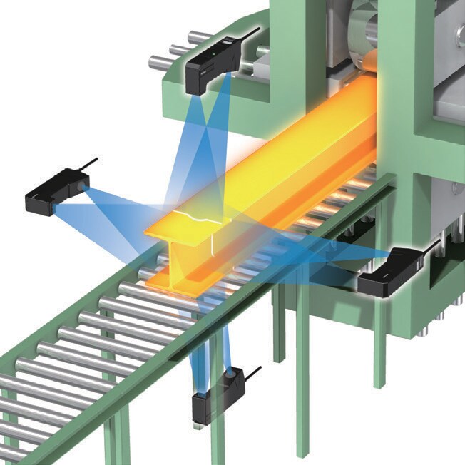 La Serie LJ-X8000 realiza diversas mediciones dimensionales e inspecciones de apariencia después de la extrusión. Como los objetivos al rojo vivo no se pueden medir por contacto, se utiliza refrigeración por camisa de agua para la medición sin contacto.