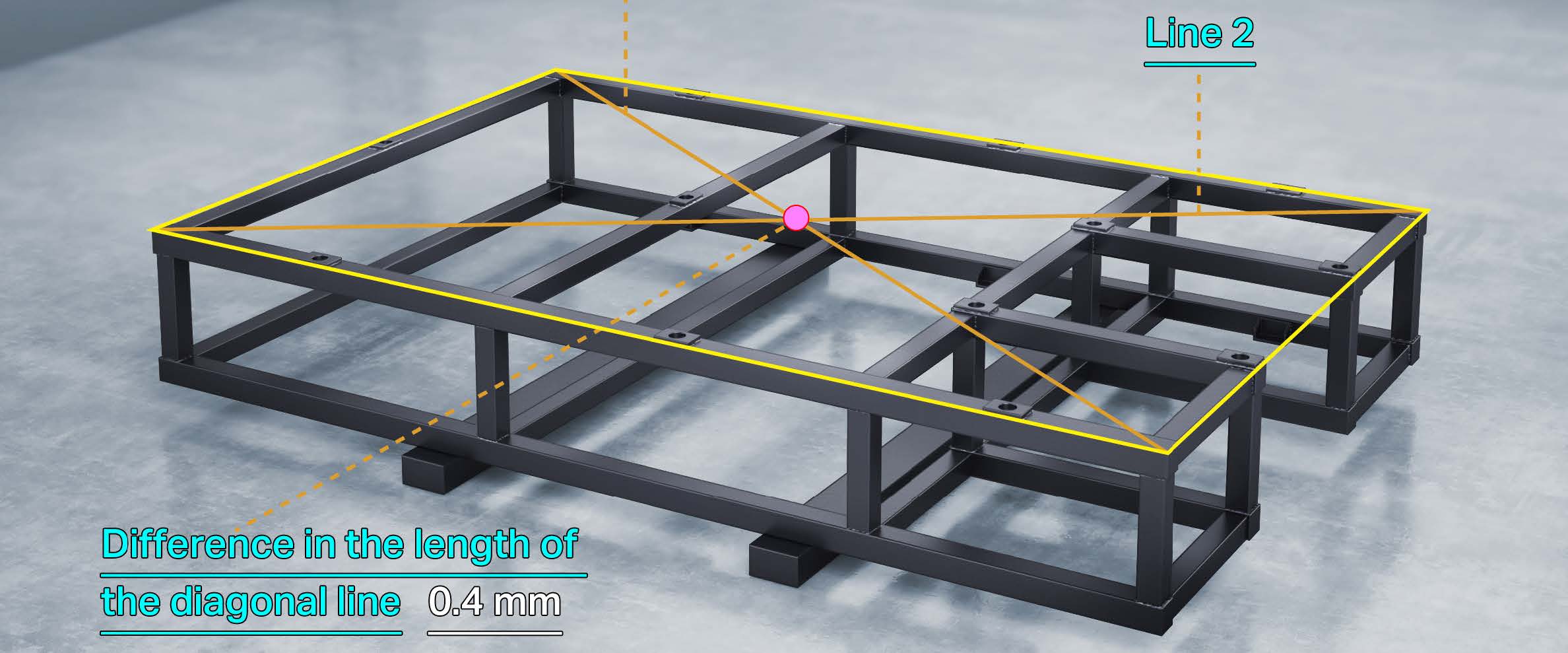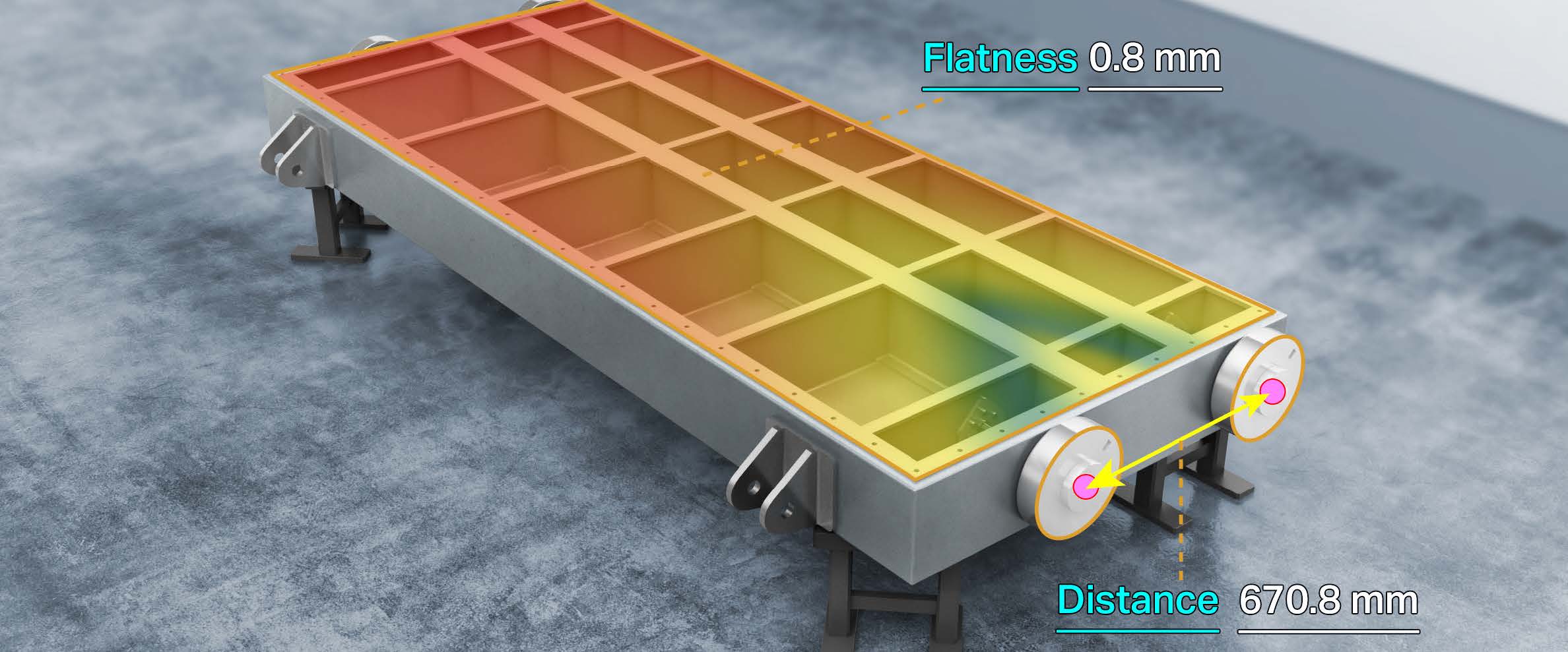 La Serie WM-6000 también es útil para medir soportes de equipos fabricados mediante trabajo de chapa y soldadura. Se puede medir la planicidad y la longitud de la línea diagonal.