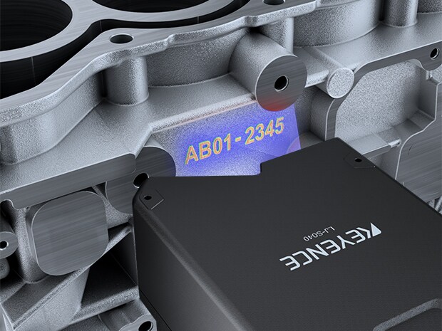 El reconocimiento de caracteres (OCR) con sensores de visión convencionales es difícil en superficies de fundición y otras superficies texturizadas e irregulares. La lectura de caracteres también se vuelve inestable si la superficie está sucia. El Sensor de Instantáneas Láser 3D de la Serie LJ-S8000 utiliza información de altura para generar imágenes 3D para OCR, lo que permite una lectura estable incluso en superficies irregulares o contaminadas.