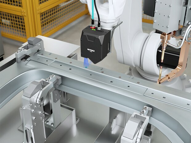 La inspección de la forma y apariencia de la pepita de soldadura por puntos es posible con el Sensor de Instantáneas Láser 3D de la Serie LJ-S8000. El sensor se puede montar en un robot para inspección en cualquier ángulo o ubicación. El cabezal del sensor también incluye un escáner que estabiliza las inspecciones sin necesidad de preocuparse por las vibraciones o la linealidad del robot.