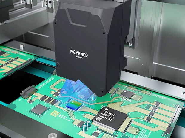 El Sensor de Instantáneas Láser 3D de la Serie LJ-S8000 mide la distribución de la altura escaneando la superficie del objetivo con un láser, lo que permite la inspección de la altura, el asentamiento y la inclinación de los componentes de PCB montados. Con la Serie LJ-S8000, el escáner está integrado en el propio cabezal del sensor, por lo que no se requieren recursos ni tiempo adicionales para piezas auxiliares, como platinas y codificadores. Las inspecciones en línea con la Serie LJ-S8000 son tan simples como conectar el dispositivo al equipo existente.