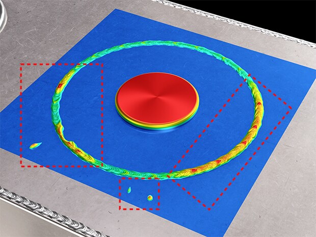 Las inspecciones de apariencia de objetivos con variaciones en el color o brillo de la superficie, como los cordones de soldadura, no son estables con imágenes convencionales en escala de grises. Sin embargo, con la inspección de apariencia 3D, los datos de medición de altura permiten detectar superficies irregulares sin verse afectados por la condición de la superficie del objetivo. Además, el escáner integrado del Sensor de Instantáneas Láser 3D de la Serie LJ-S8000 elimina la necesidad de piezas auxiliares como platinas y codificadores, y por lo tanto también elimina el tiempo que de otro modo se necesitaría para especificar e implementar esos dispositivos adicionales. Las inspecciones son posibles simplemente conectando la Serie LJ-S8000 al equipo.