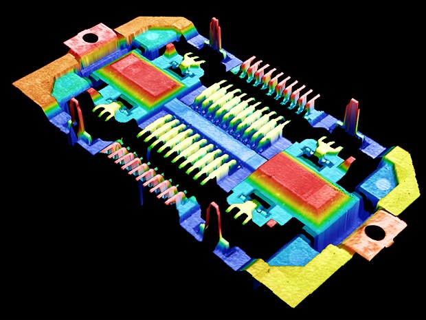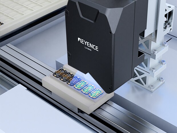La Serie LJ-S8000 se puede utilizar para inspeccionar la deformación de los terminales de los conectores. A diferencia de las cámaras de área convencionales, que solo observan la información en escala de grises, la medición de dimensiones 3D también considera la información de altura para permitir resultados altamente estables. Hay disponible una amplia variedad de herramientas de inspección, que incluyen medición de altura, planitud, posición, ancho, área, volumen, ángulo y GD&T.