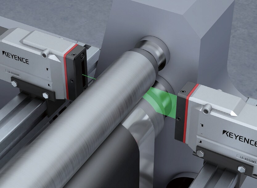 Cuando es difícil medir el objetivo directamente, el espesor se puede determinar midiendo el espacio entre los rodillos. Con la Serie LS-9000, se puede medir un espacio tan pequeño como 10 μm (0.0004"). La tasa de muestreo de ultra alta velocidad de 16,000 ciclos/segundo proporciona retroalimentación inmediata para el control del proceso, mejorando la calidad.