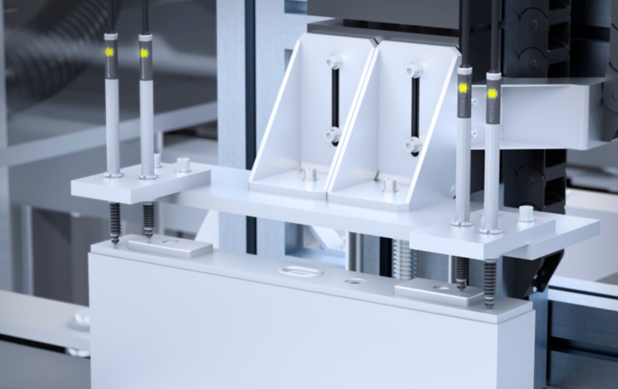 El cuerpo sellado debe soldarse después de insertar la celda en el contenedor. Si los cuerpos sellados no están colocados en paralelo o si sus posiciones quedan fuera del rango de enfoque del láser, pueden producirse defectos de soldadura. Es posible realizar mediciones estables con alta precisión. La detección es independiente del color y fácil de configurar. Además, el sensor es adecuado para uso prolongado, gracias a su vida útil de 200 millones de detecciones.