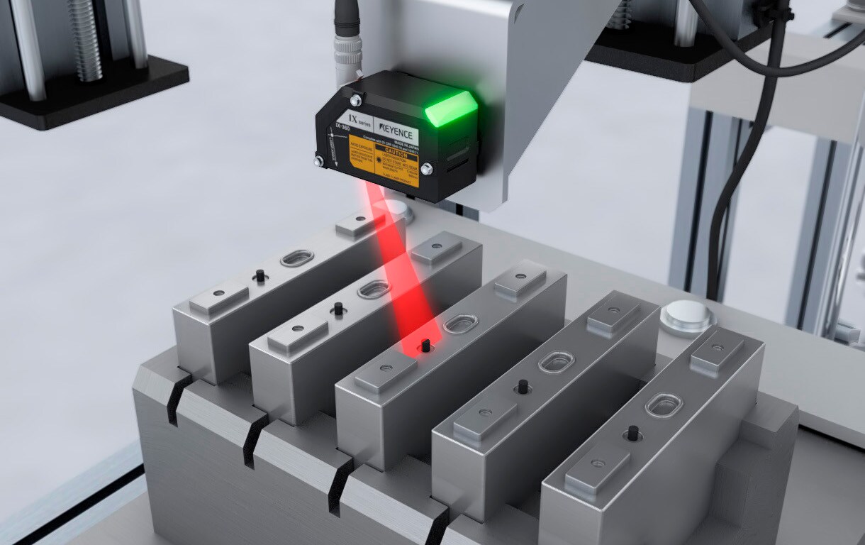 Después de la primera inyección de electrolito, se coloca un sello y es necesario transportar la celda al siguiente proceso. Si el sello falta o está inclinado, el electrolito puede filtrarse. Al ser una inspección sin contacto, es posible mejorar el tiempo de ciclo. Además, se logra una detección estable incluso si las celdas están desalineadas, gracias a la función incorporada de corrección de posición.