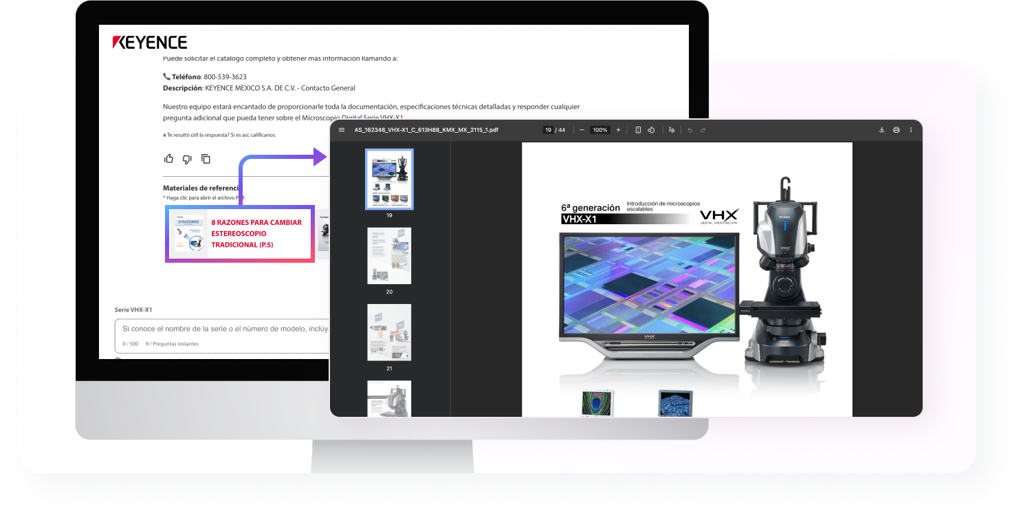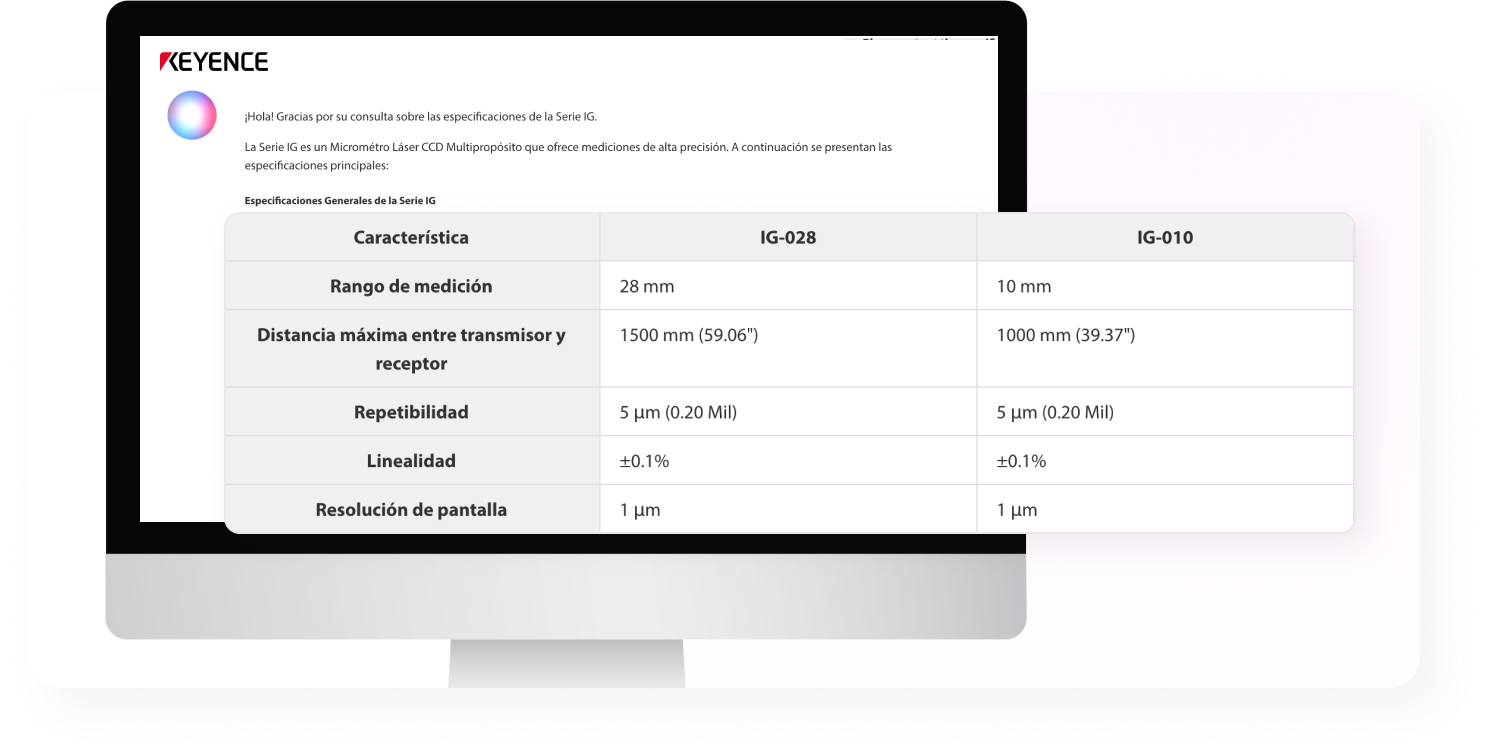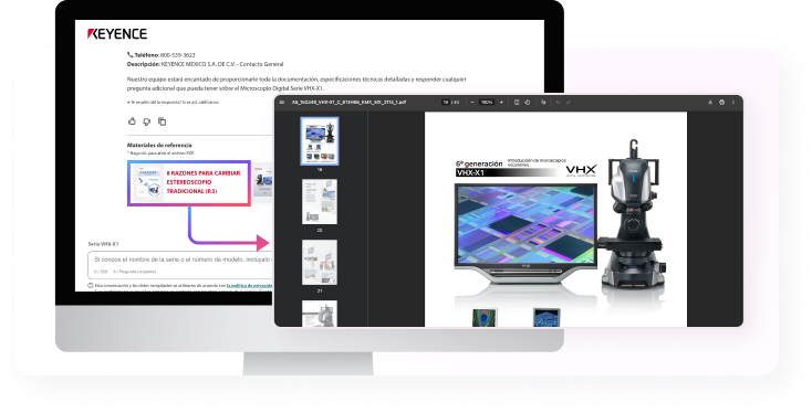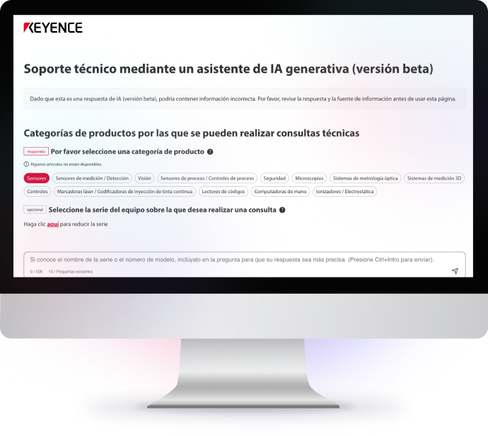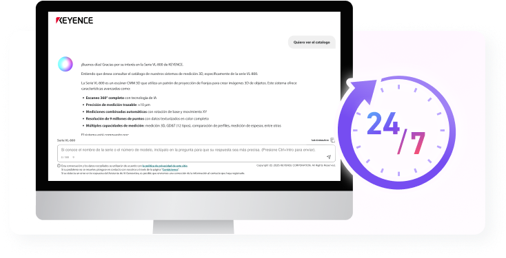 KEYENCE ha lanzado un asistente generativo de IA para gestionar las consultas técnicas sobre nuestros productos. El asistente responderá con prontitud a los problemas y consultas que le surjan al utilizar nuestros productos.