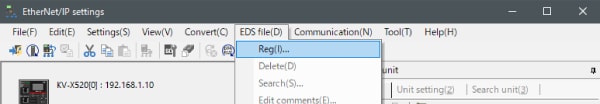 4. Select [EDS file (D)] → [Reg (I)] to import the KEYENCE sensor setting file(ez1 file) or EDS file.