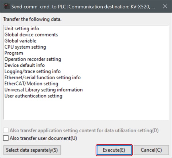 In the [Send comm. cmd. to PLC] dialog box, click [Execute(E)].