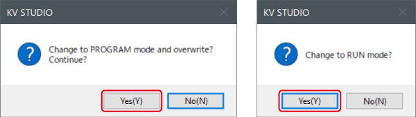 6. When the configuration on the unit editor differs from that of the actual device, a dialog for confirming transfer of the project is displayed. With the PC and KV-X Series connected using the USB cable, click [Yes (Y)].