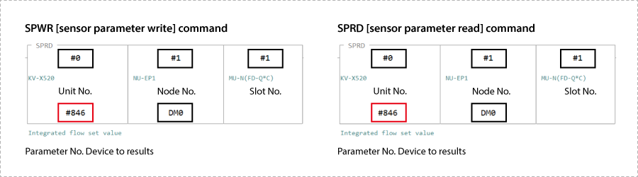 To perform message communication with KV STUDIO, use the sensor setting commands (SPWR [sensor parameter write] and SPRD [sensor parameter read]).