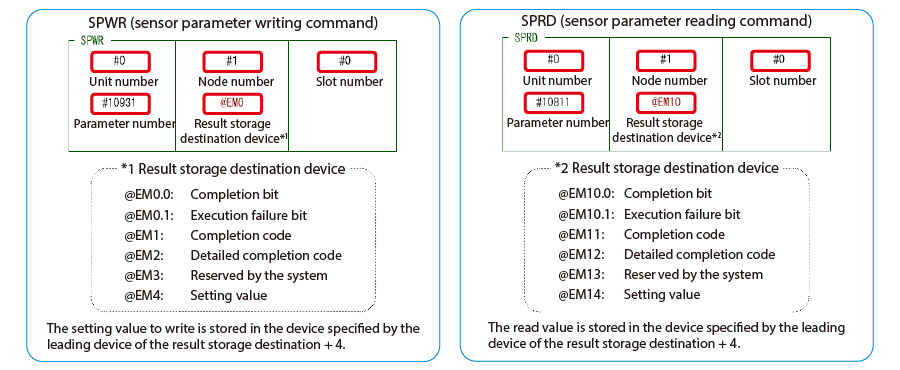 Execute SPWR (sensor parameter writing command)/SPRD (sensor parameter reading command) to write/read the parameters of the specified sensor.