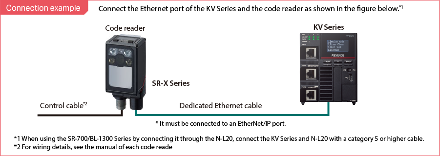 ※2 This is the cable for connecting the code reader and the PLC. This dedicated cable is not necessary when using the N-L20.