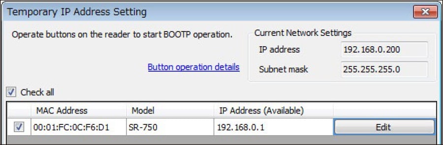 (1) Click the [Temporary IP address setting] icon to display the [Temporary IP Address Setting] dialog box.