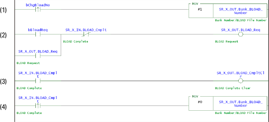 - (3) When the BLOAD complete relay (SR_X_IN.BLOAD_Cmplt) turns ON, the BLOAD complete clear relay (SR_X_OUT.BLOAD_CmpltClr) is turned ON.